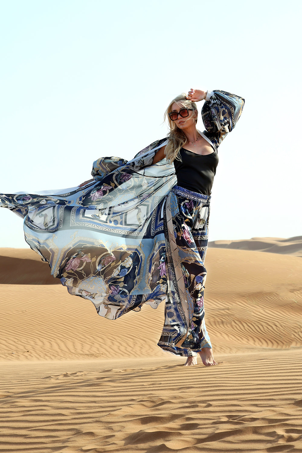 Made from sheer, lightweight chiffon, our Ducks Print Wrap Dress Kimono is a true masterpiece. It combines elegance and drama seamlessly, thanks to its billowing sleeves and the large self-tie around the waist. The kimono drapes gracefully, exuding femininity and capturing attention wherever you go.