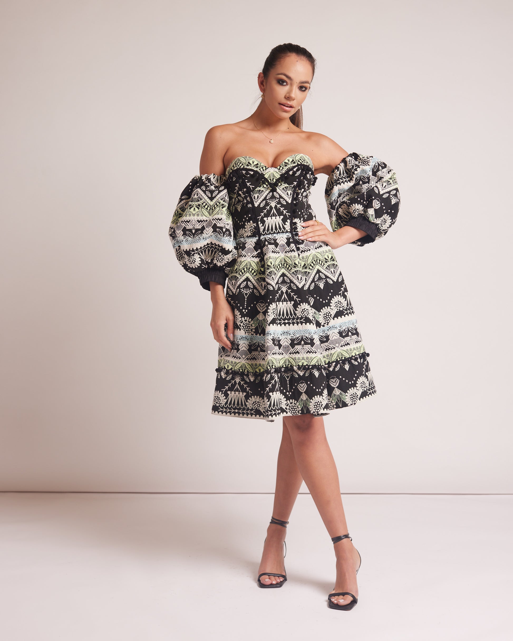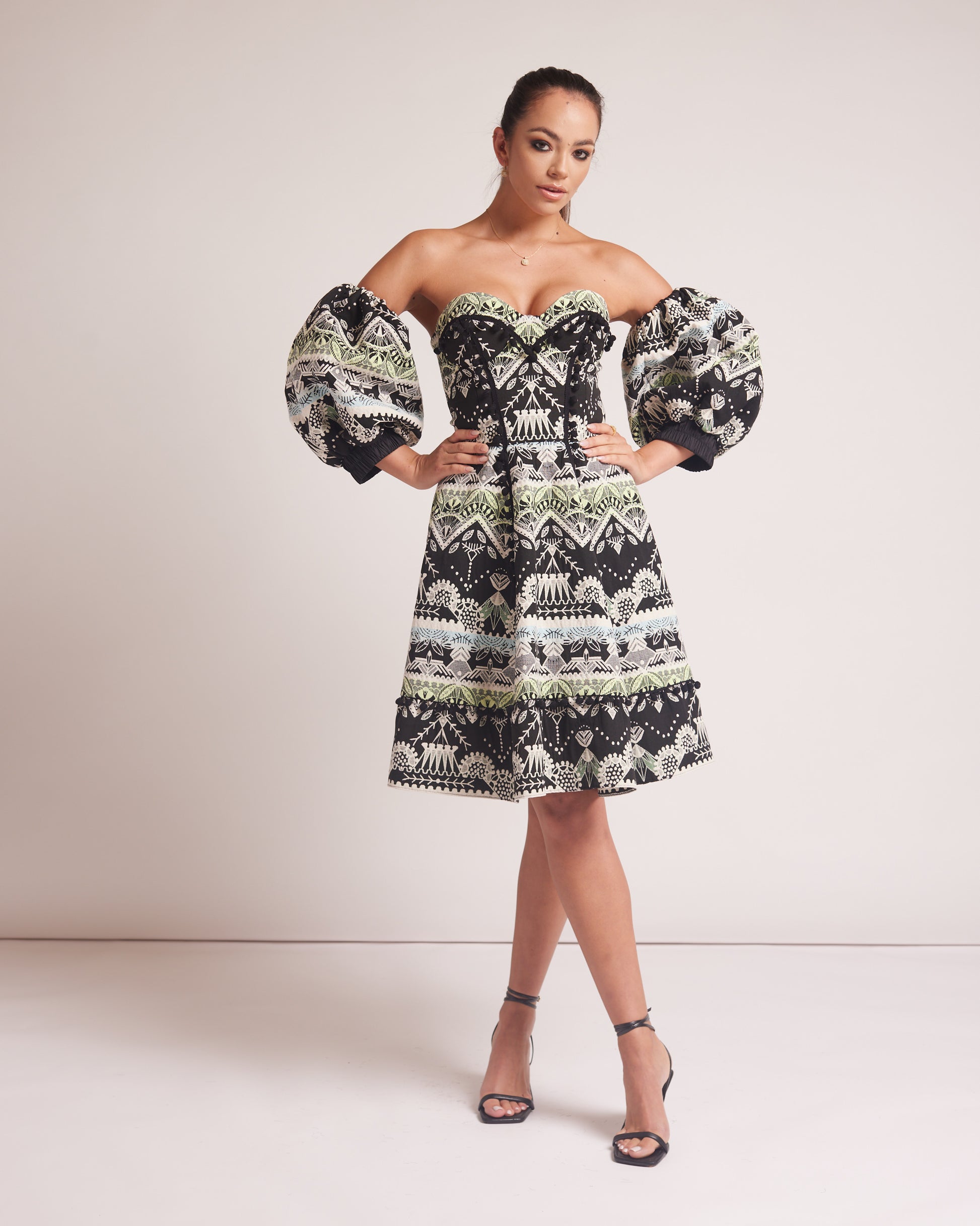This dress is part of a exclusive capsule collection is crafted from premium cotton jacquard boucle material, offering a luxurious and comfortable fit.