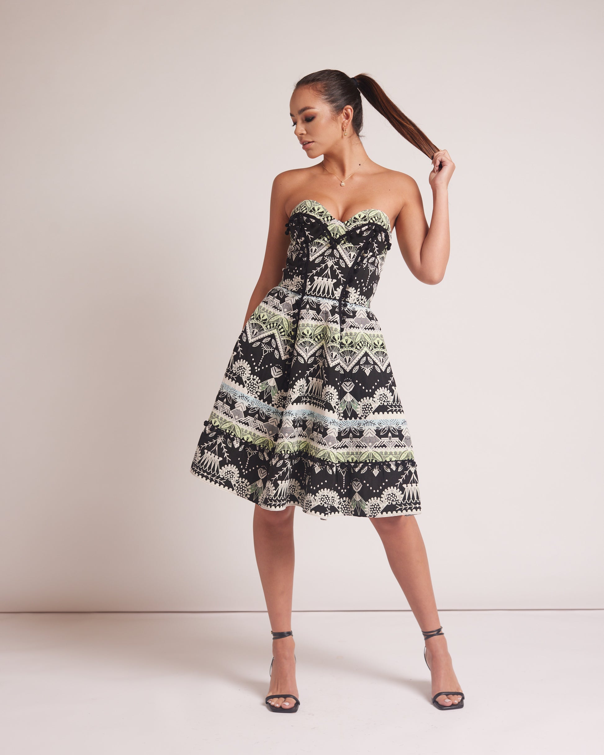Elegant Corset Dress in Cotton Jacquard Boucle