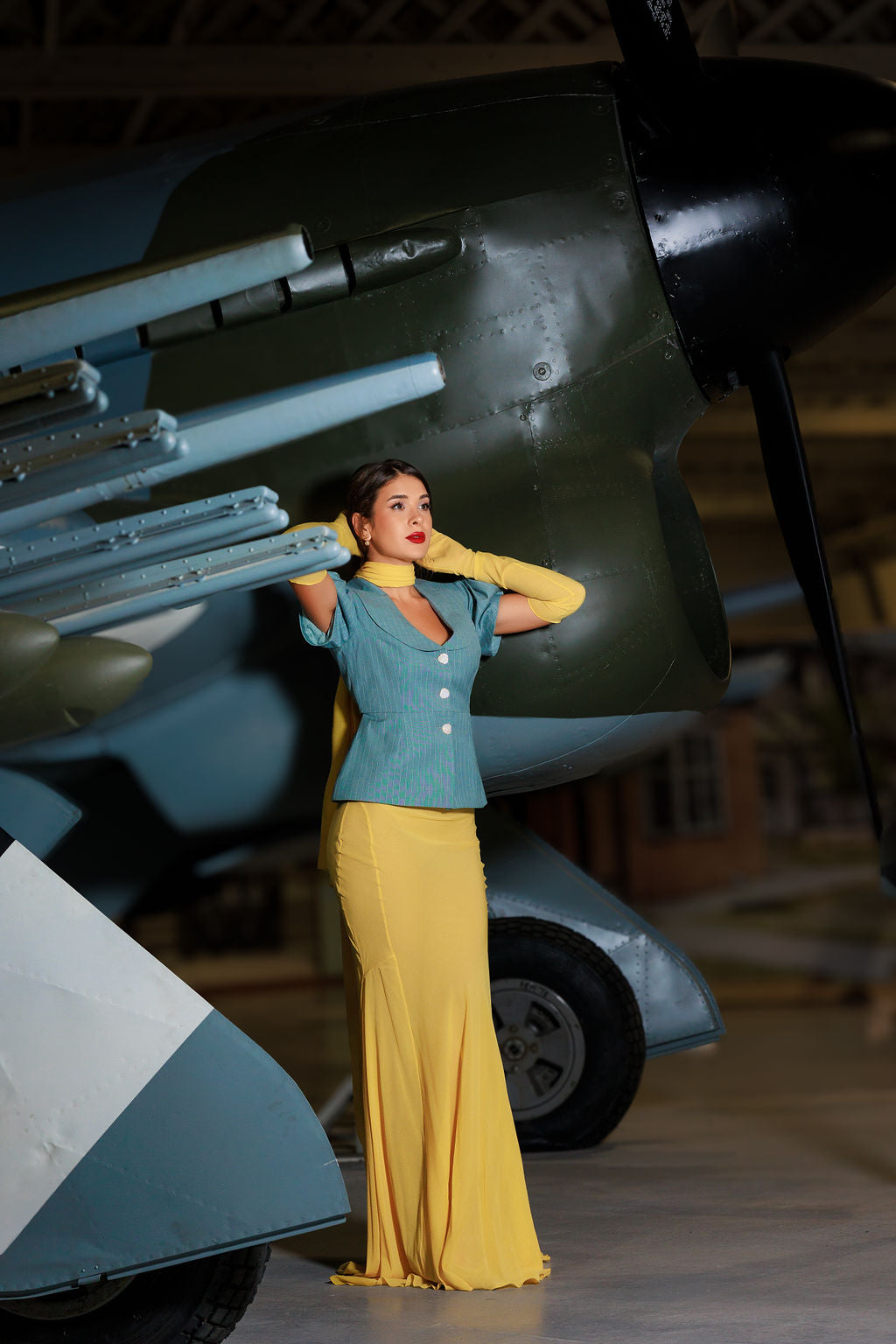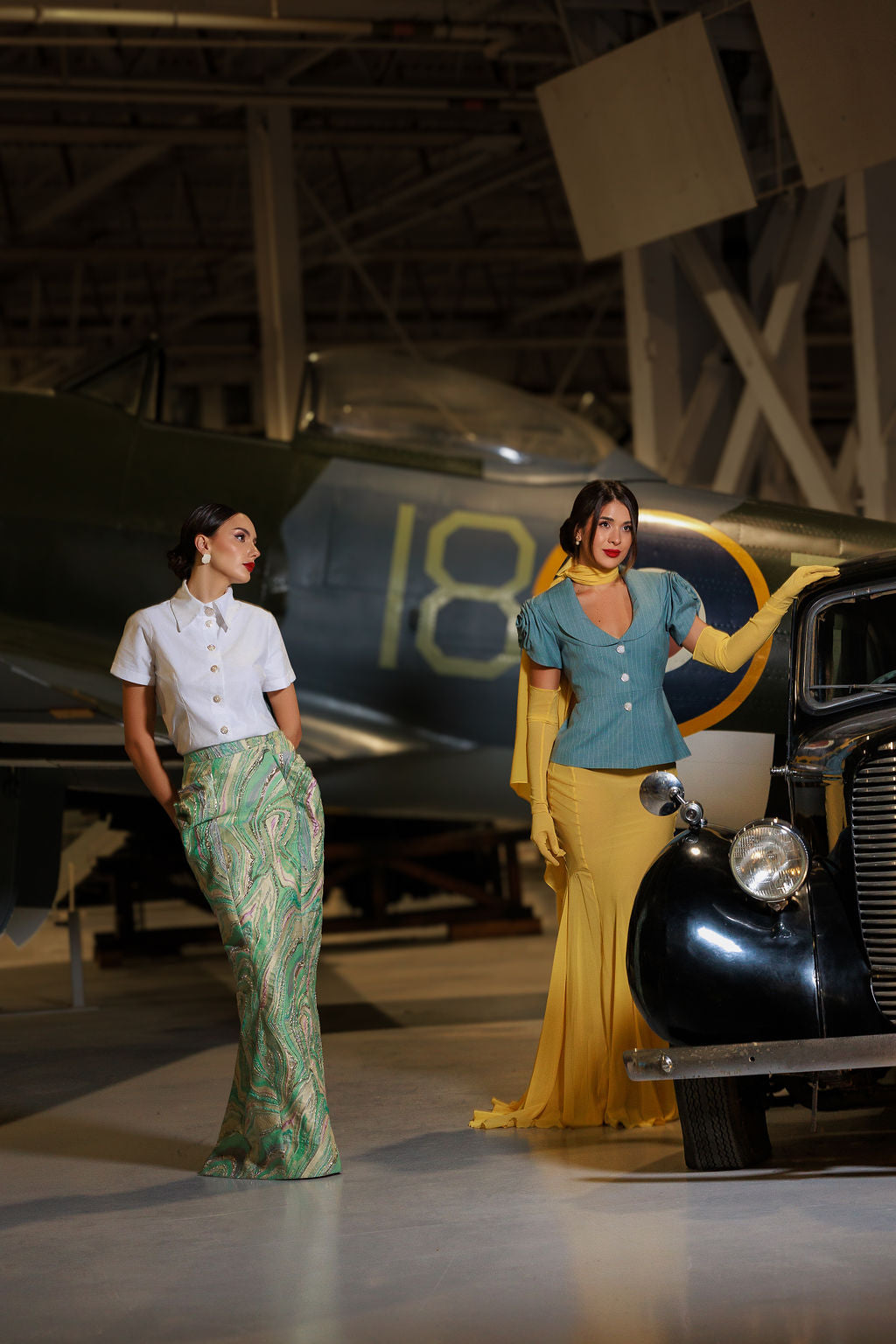 Step into a world of effortless charm with our flowing yellow silk chiffon skirt. The lightweight fabric moves beautifully, adding a touch of sophistication with every step. Paired with matching gloves, this ensemble captures a vintage-inspired allure, perfect for those who appreciate a blend of luxury and grace. Ideal for special occasions or making a striking impression.